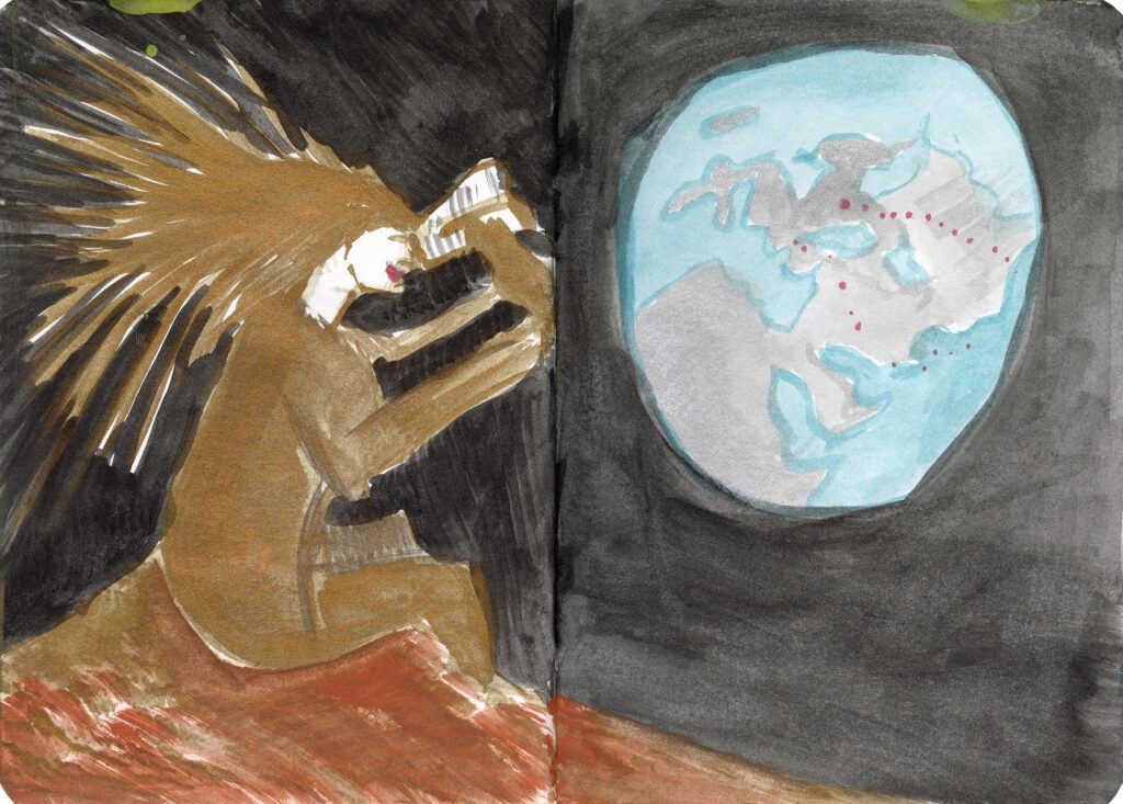 Detail from Güneş Terkol’s watercolor sketchbook, 2025