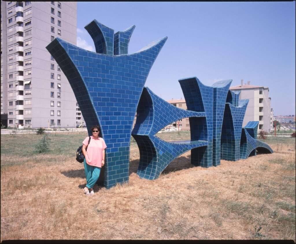 Handan Börüteçene, in front of her Ataköy Mesa Sculpture (1987-1988), 1988