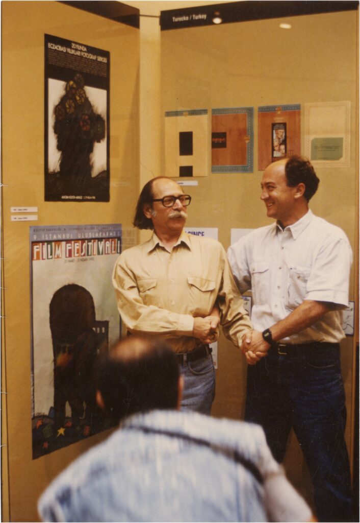 Sadık Karamustafa (sağda) ve Yurdaer Altıntaş, Brno Uluslararası Grafik Tasarım Bienali’nde, 1990